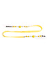 Collana porta occhiali con maglia in stoffa. Imprezziosita con pietre dello stesso colore del laccio. Dotata di piccoli ganci alle estremità.
